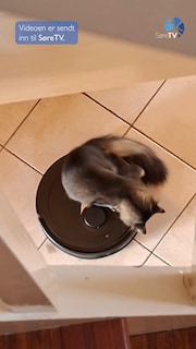 Kattane Yoda og Chewbacca var på "fjern-jakt" heime i stova i Ørsta. Video: Henriette Berkvik